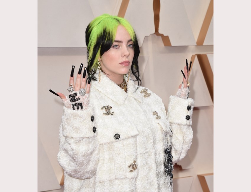 Διατηρώντας το δικό της στυλ και ύφος, η Billie Eilish διέσχισε το κόκκινο χαλί με τις κλασικές neon ρίζες της να πρωταγωνιστούν, τις οποίες μάλιστα στόλιζαν Chanel αξεσουάρ μαλλιών, και ένα μαύρο μανικιούρ, που φρόντιζε να επιδεικνύει διαρκώς.