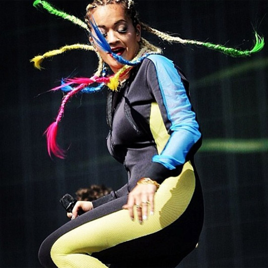 H Rita Ora έκανε μια εκκεντρική εμφάνιση με πολύχρωμες, μακριές πλεξούδες. (@ritaora)
