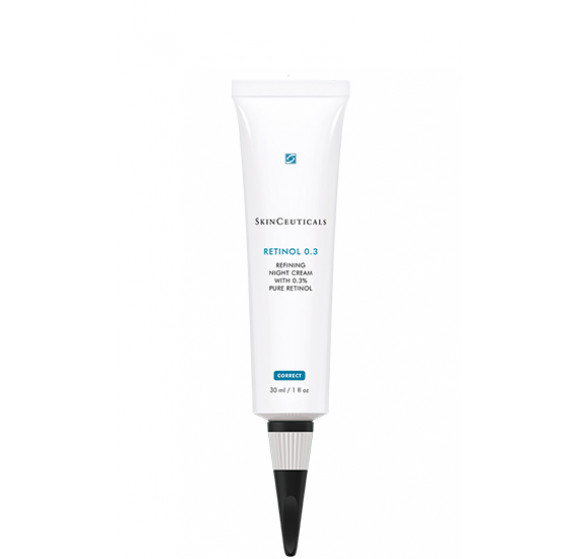 Η SkinCeuticals Retinol 0.3 διεγείρει την κυτταρική ανανέωση και την παραγωγή κολλαγόνου για μείωση των λεπτών γραμμών, ρυτίδων και σημαδιών γήρανσης τόσο από φωτο- όσο και από ενδογενή γήρανση. Περιέχει 0.3% καθαρή ρετινόλη. Μειώνει τις λεπτές γραμμές, τις ρυτίδες, τις κηλίδες της ηλικίας και τον ανομοιόμορφο τόνο του δέρματος. Διατηρεί βέλτιστη σταθερότητα ρετινόλης και ελαχιστοποιεί τους ερεθισμούς που συνήθως σχετίζονται με τη χρήση της.