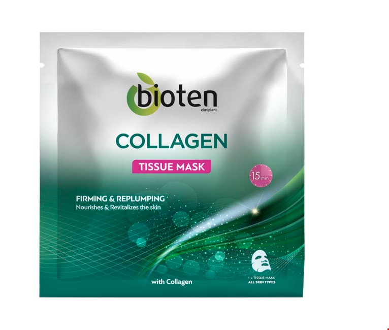 Η υφασμάτινη μάσκα Bioten με κολλαγόνο αποτελεί την τέλεια λύση για αφυδατωμένο και κουρασμένο δέρμα. Προσφέρει άμεση περιποιήση στο δέρμα, κάνοντας τις λεπτές γραμμές να εμφανίζονται πιο λείες μετά τη χρήση. Η φόρμουλά της περιέχει κολλαγόνο, μια πηγή φυσικών πρωτεϊνών του δέρματος που του παρέχει δύναμη, ελαστικότητα και αναζωογόνηση.
