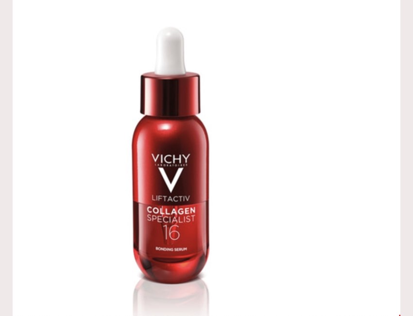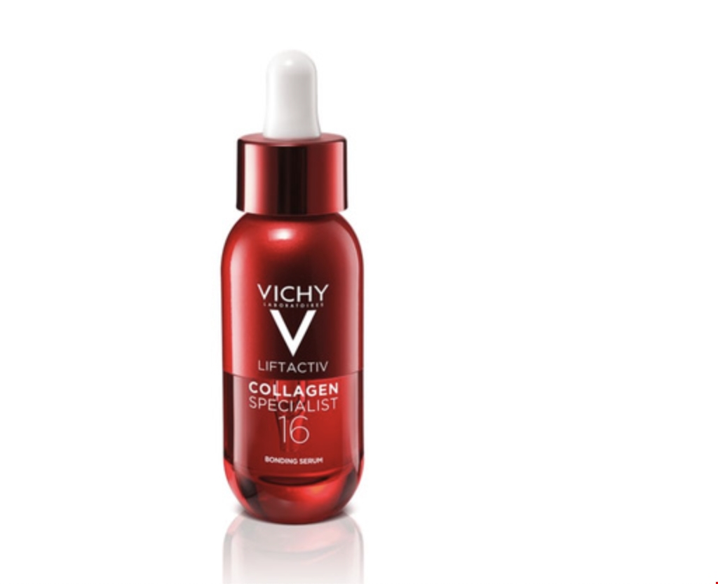 Το Vichy Collagen Specialist 16 Bonding Serum, εμπεριέχει την αποκλειστική Τεχνολογία Co-Bonding, που ενισχύει και συνδέει όλες τους τύπους κολλαγόνου και διορθώνει 16 σημάδια γήρανσης. Περιέχει έναν πανίσχυρο συνδυασμό Ραμνόζης, Πεπτιδίων και Maitake, τρία συστατικά που δρουν σε συνέργεια αναζωογονώντας την επιδερμίδα.