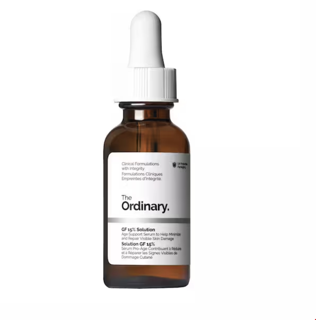 Αντιγηραντικός ορός που περιέχει 15% συμπυκνωμένο διάλυμα αυξητικού παράγοντα, για μείωση και αποκατάσταση της βλάβης του δέρματος και ελαχιστοποίηση των ορατών σημαδιών γήρανσης. Το διάλυμα GF 15% ελαχιστοποιεί και επανορθώνει τις ορατές βλάβες του δέρματος, για να μειώσει τα σημάδια γήρανσης στο πρόσωπο και τον λαιμό