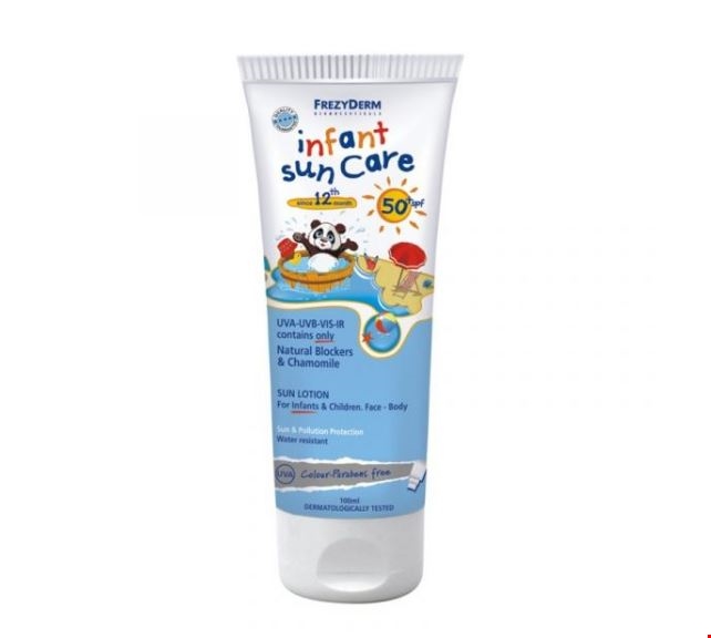 Αντηλιακό γαλάκτωμα προσώπου και σώματος για νήπια, που προσφέρει αποτελεσματική πολύ υψηλή ηλιοπροστασία μόνο με ανόργανα φίλτρα. Δημιουργεί ένα αδιάβροχο φιλμ προστασίας με γαλάζιο φυτικό χρώμα, που υποδεικνύει την ακριβή περιοχή εφαρμογής. Παράλληλα, η εμπλουτισμένη του σύνθεση με χαμομήλι, προστατεύει από την αφυδάτωση και τους ερεθισμούς. Απορροφάται άμεσα και δεν αφήνει λευκή ή γαλάζια χροιά.