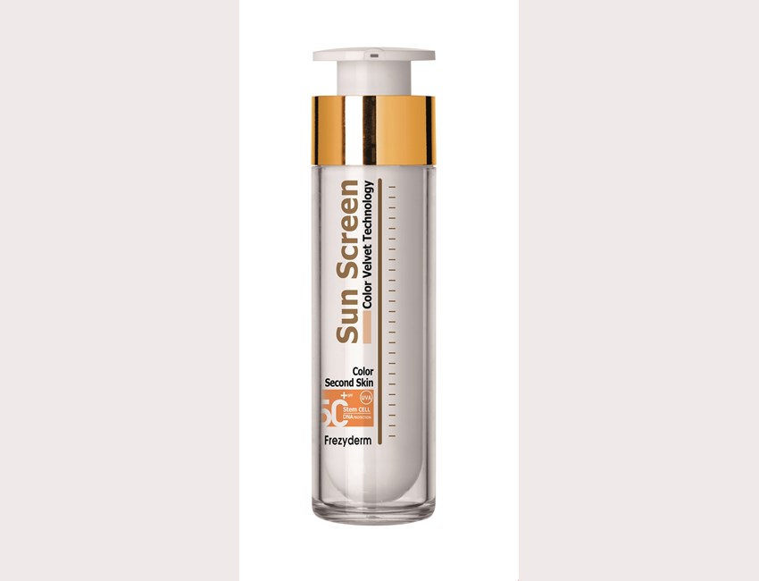 Κρέμα με χρώμα Sun Screen Color Velvet SPF 50+ της Frezyderm (στα φαρμακεία).