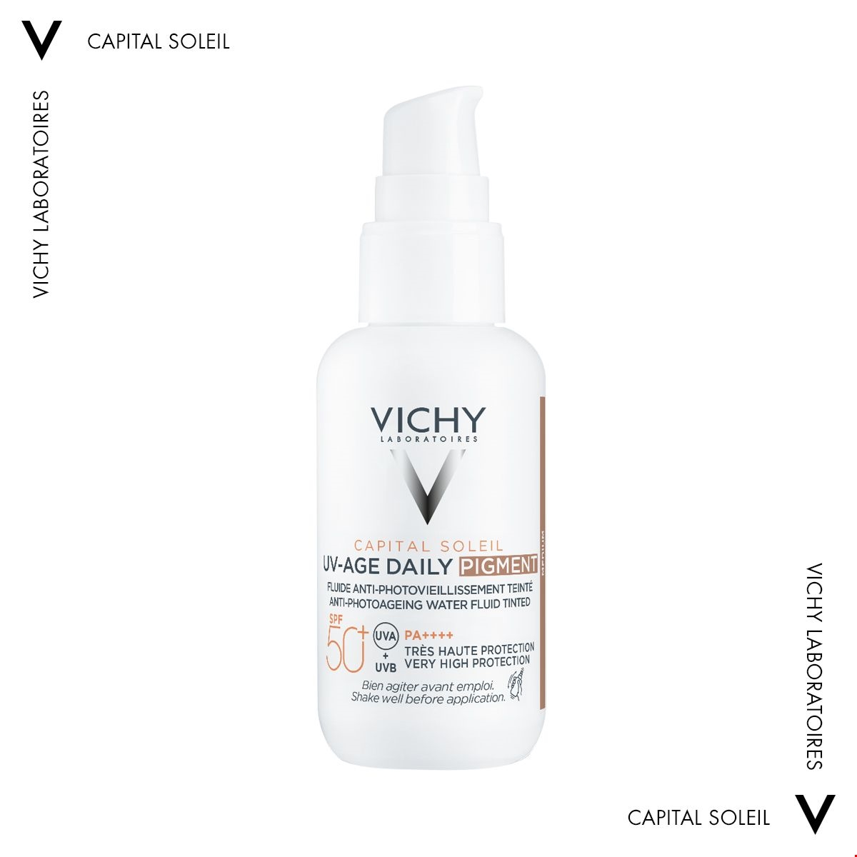 Κρέμα με χρώμα κατά της φωτογήρανσης Capital Soleil UV-Age Daily SPF 50+ της Vichy (στα φαρμακεία).