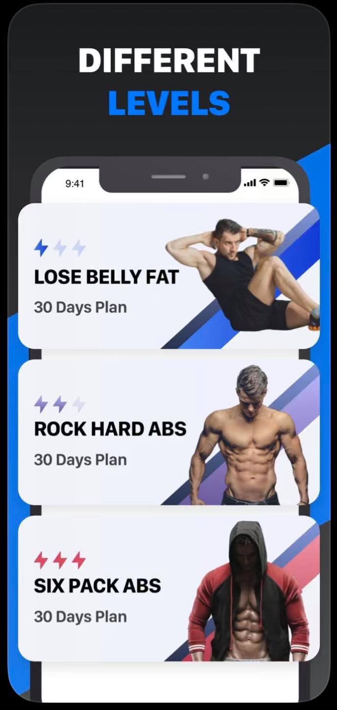 Η εφαρμογή υπόσχεται κοιλιακούς μέσα σε τριάντα ημέρες με επίπεδα ασκήσεων (χωρίς όργανα και αξεσουάρ), βίντεο και συμβουλές για αρχάριους και προχωρημένες.