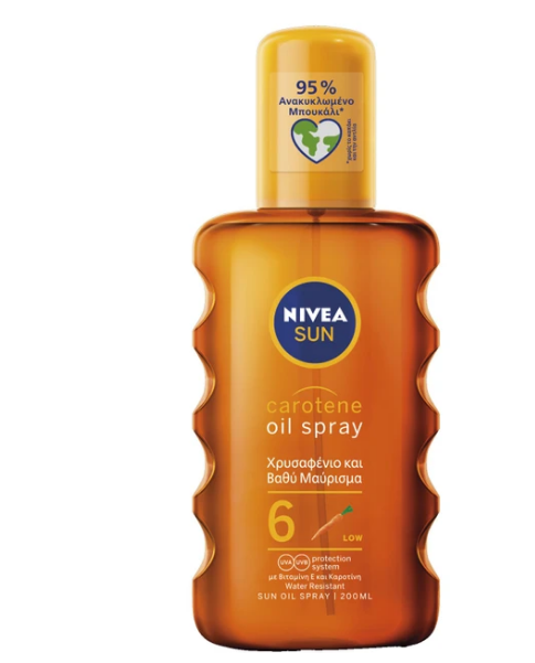 Η NIVEA SUN λοσιόν Carotene SPF 6 βοηθά την επιδερμίδα να αποκτήσει γρήγορα όμορφο και έντονο μαύρισμα με 0% αυτομαυριστικές ιδιότητες.