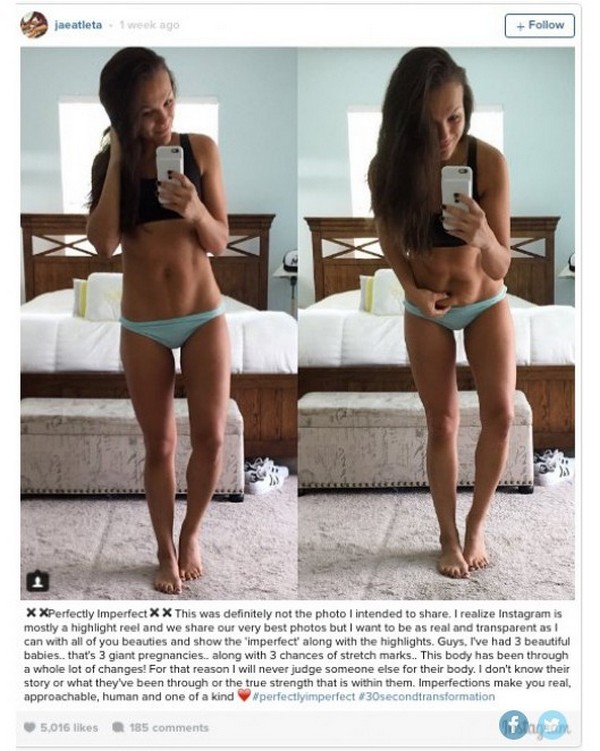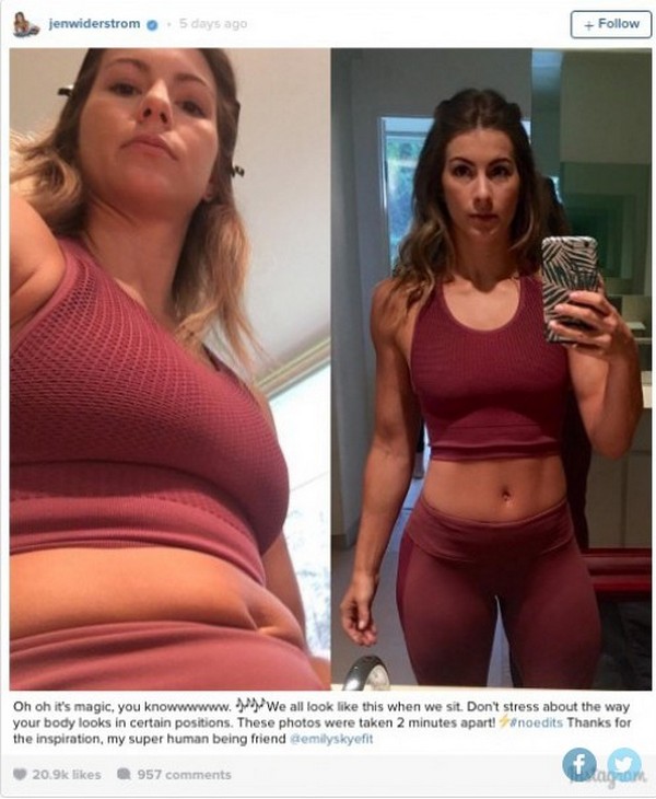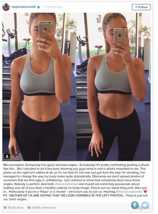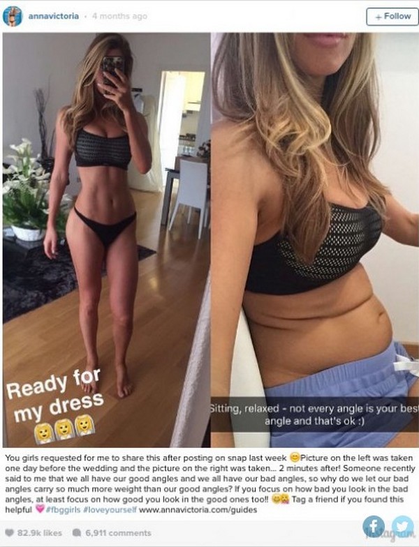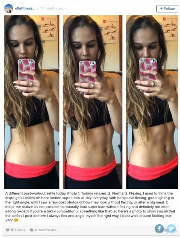 Πολλές από αυτές αναρτούν στους προσωπικούς τους λογαριασμούς φωτογραφίες με τις οποίες μας παρουσιάζουν το «πριν» των επεξεργασμένων φωτογραφιών και την πραγματική αλήθεια, και παίρνοντας ρεαλιστικές πόζες μας αποδεικνύουν πως όλα τα σώματά έχουν τις ατέλειες τους. Ακόμα και αυτά που μοιάζουν να διαθέτουν τις απόλυτες αναλογίες. Τσέκαρε τις παρακάτω αναρτήσεις και θα διαπιστώσεις ιδίοις όμμασι πως η θέα των καλογυμνασμένων κορμιών και των τέλειων αναλογιών είναι απλά θέμα... σωστής οπτικής γωνίας.