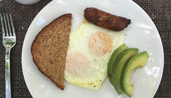 Για πρωινό η αθλήτρια επιλέγει 2 αυγά με ένα λουκάνικο κοτόπουλου και μισό αβοκάντο, που περιέχουν καλά λιπαρά. Δεν καταναλώνει πολλούς υδατάνθρακες, οπότε συμπληρώνει το γεύμα της με μισή φέτα ψωμί του τοστ.
