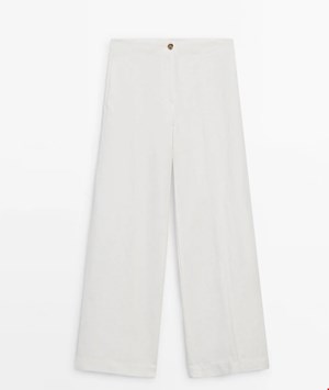 Παντελόνι από μείγμα βαμβακιού και λινού με φαρδύ μπατζάκι Massimo Dutti